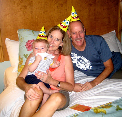 After the call from the pediatrician we packed up the SUV and left early saturday morning for Florida. Grandma Nancy's Birthday is the 18th of this month so we thought it would be nice to have a party with her while we visited...so we brought a cake and some party hats.