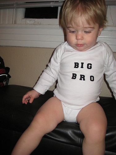 Here are some photos of Cohen wearing his big brother onesie! He's adorable....had to share. Oh his sibling (I fond out Tuesday if we are having a girl or a boy) will be here around September 30th.
